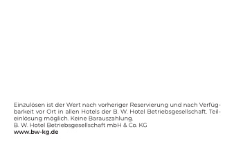 Einzulösen für jegliche Hotel- und Restaurantleistungen in unseren Hotels: